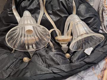 N 2 Applique in vetro artistico di Murano, arricchita da pastorali, lavorazione rigadin, fatta secondo l’antica arte dei maestri vetrai muranesi. Nella versione cristallo oro è utilizzato l'oro zecchino 24k. Lampadine 1x E 14 (anche led).
