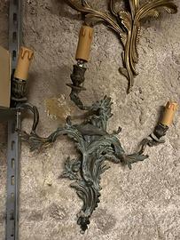 Raffinato set di 3 applique antiche da parete, lavorate in stile Luigi XV / Rococò con ricchi motivi fogliati e bracci sinuosi.