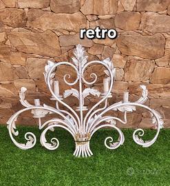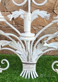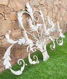 APPLIQUE A 5 LUCI ANTICO. È STATO REALIZZAYO IN STILE SHABBY, SOSTITUITE CANDELE PER CUI, COME NUOVO. DECORO PANNA CON LIEVI SFUMATURE MARRONCINE. Larghezza cm 84, altezza cm 58