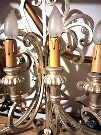 Applique artigianale in ferro battuto colore argento anticato , com sei punti luce. Perfette condizioni