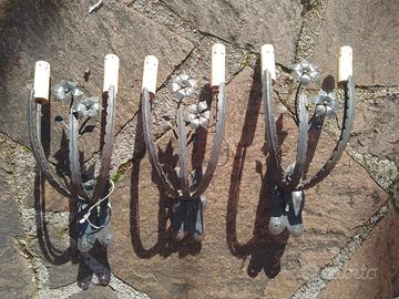 3 Applique artigianali realizzati in ferro battuto risalenti alla metà del '900. Oggetti realizzati completamente a mano dall'artigiano Mario Marzi nella sua bottega in via Borgognona a Roma. Altezza circa 40 cm. Prezzo leggermente trattabile. Ritiro a mano in zona Castelli Romani.