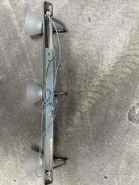 Vendo lampada a muro da bagno con 3 punti luce, struttura in metallo cromato lucido e diffusori in vetro satinato.