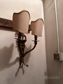 N. 2 applique con ventoline in ferro battuto dorato con internente doppia lampadina