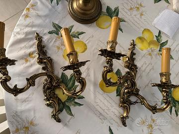 Due applique da parrte e un candelabro stile antico gli oggetti sono in OTTONE bisogna lucidarli