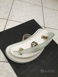 Vendo lampada da parete (applique) in ceramica bianca con eleganti dettagli verdi e vetro satinato.