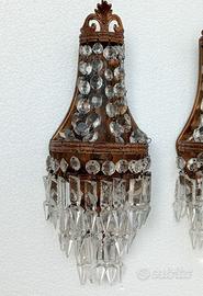Vendo coppia di applique con cristalli in ottime condizioni e funzionanti. Larghezza 13 cm, altezza 35 cm. Prezzo totale