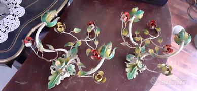 coppia applique con fiori in metallo, buone condizioni. alt 27 lar 23