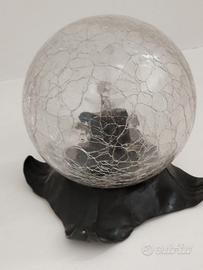 LAMPADA BASE FERRO BATTUTO CON SFERA VETRO TIPO SATINATO. ATTACCO LAMPADINA E27