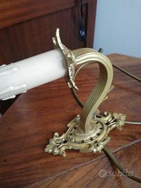 Applique d epoca dorata con cappellina colore crema bordata in passamaneria completa di interruttore.