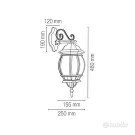 applique discendente SANTIAGO-AP1B in alluminio color nero e verde presenta la predisposizione per l'alloggio di 1 lampadina attacco E27 Il grado di protezione IP44 garantisce la resistenza alla pioggia e protegge contro spruzzi d'acqua provenienti da tutte le direzioni. Nr. 8 pezzi Come nuove comprensive di lampadine 24€/cad (Prezzo di listino €77)