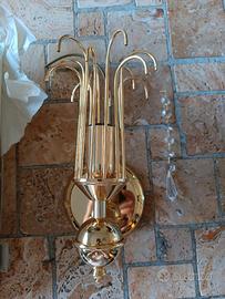 Applique da muro colore dorato con 12 pendenti con gocce di cristallo + 2 di riserva. Nuovo, mai usato. Perfettamente integro.