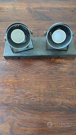 Stupenda applique GU10 (lampadine non incluse) colore grigio effetto industrial vintage. Con due faretti regolabili in altezza e direzione.