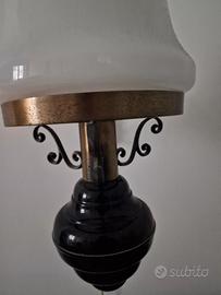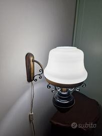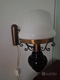 Lampada da parete (applique) in stile classico, vintage. La parte inferiore della lampada presenta un elemento ornamentale nero lucido dalla forma tondeggiante. Il paralume è in vetro bianco opalino, con una forma leggermente svasata verso il basso Num.pezzi 2