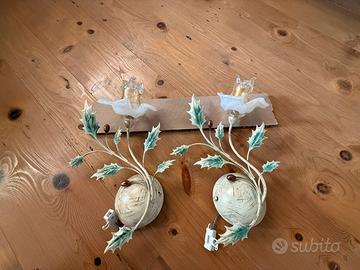 Vendo Applique da parete in metallo realizzato a mano con fiore in vetro di Murano. Si è leggermente tolta un po' di verniciatura sulla fogliolina.( come da foto). Altezza 35cm - larg 15 cm.