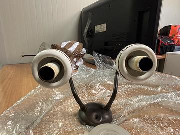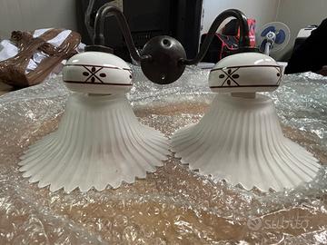 Applique da parete con doppio paralume in vetro satinato plissetato Base in ceramica e metallo Diametro 17