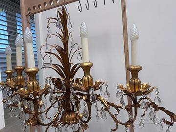 Preziosa e decorativa, l’applique ha 5 luci montate su finte candele. Numerose gocce in cristallo lâ impreziosiscono.