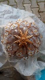 Splendida composizione di applique classiche in ottone dorato e fiori in cristallo - n. 2 applique da parete a due punti luce altezza 45 cm. larghezza 25 cm. euro 180 la coppia - n. 1 applique da soffitto diametro 55 cm. euro 180