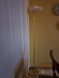 La piantana ha gambo in ottone e luce sempre in vetro trasparente lavorato e modellato a mano spatolato rosa.
