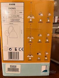 Applique anticata brunita, con interruttore, vetro bianco opaco striato. Marca Eglo