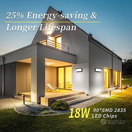 Applique Esterno LED, 18W IP65 Impermeabile Moderno Lampade Esterno, Luci da Esterno Parete, per Balcone, Terrazzo Corridoio, Giardino, Decorazioni Esterne Luce (Bianco Freddo, 2PCS)