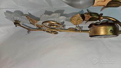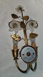 applique con fiori in vetro e struttura color oro, vintage Italian Hollywood Regency Floral Wall. #applique #lanpada #illuminazione #oro #vetro