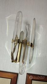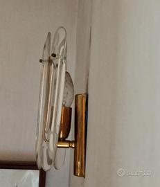 Coppia di applique da muro anni 60 di Gaetano Sciolari in ottone e cristallo. Collezione modernariato vintage antico lampadario abat-jour lampade