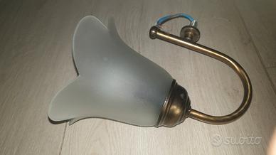 Applique in ferro battuto dorato a 1 luce, completa di portalampada in vetro di murano, a forma di fiore; adatto a tutti i tipi di lampadine, anche led a basso consumo. Euro 15 trattabili