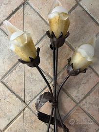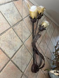 Applique in ferro battuto e 3 fiori in vetro