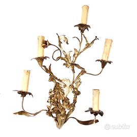 Applique in stile in ferro e lamierino dorati lavorati a motivo fogliaceo e