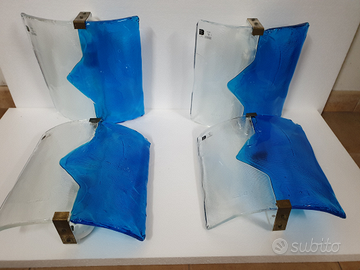 Coppia di appliques curve, design a freccia, vetro di Murano, metallo laccato bianco e ottone della manifattura Mazzega. Design famoso come Aldo Carlo Nason, Venini, Vistosi, La Murrina, Toni Zuccheri per Veart, Poliarte.