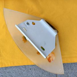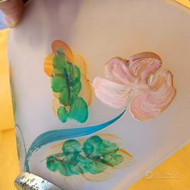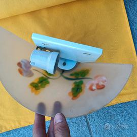Applique in vetro con supporto in metallo dotato di attacco per lampadina e fili elettrici. L'ampiezza della coppa in vetro dipinta a mano è di 25 cm circa