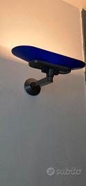 lampada da muro di Jill Uplighters blu disegnati da Perry King, Santiago Miranda e Gianluigi Arnaldi per Arteluce nel 1978. Queste bellissima lampada Arteluce é stata creata negli anni Ottanta. Perry King e Santiago Miranda hanno progettato questa lampada insieme a Gianluigi Arnaldi, ex designer di Olivetti. Gli elementi in vetro soffiato sono stati giustapposti a un semplice tubo d'acciaio per creare un design minimale. Questo bestseller di Arteluce degli anni '80 era all'avanguardia per la scelta di lampadine alogene (tipo RS7), sostituibili a scelta con lampadine a LED. Dimensioni: h x l x p = 15 x 38 x 26 cm. Fonte: libro 1000 Lights 1960 to present, Taschen, pagina 296.