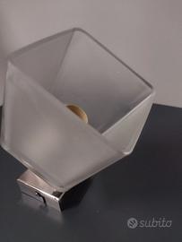 Lampada da soffitto, struttura orientabile in metallo, finitura in cromo lucido. Diffusore vetro pressato satinato. DIM. L. 9 P. 14 H. 16 NUOVA, mai usata, senza imballo originale