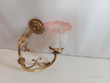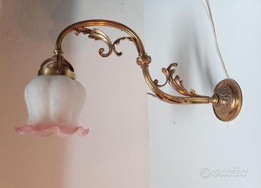Il corpo è costituito da due archi decorati con foglie d'acanto, i due archi sono collegati tramite uno snodo che permette di ruotare una parte della lampada verso il muro. La base rotonda e cesellata con deliziose conchiglie è dotata di 3 fori per montarla facilmente a muro.