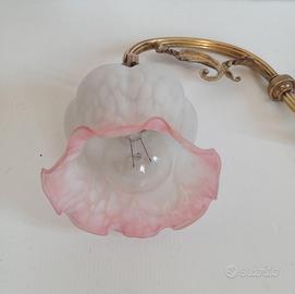 Il paralume a forma di bocciolo- Tulip- è in vetro bianco maculato, verso il bordo si tinge di rosa.