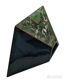 Bella e originale applique trapezoidale In ceramica smaltata lucida verde e oro.