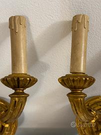 Coppia di antichi applique in legno dorato elettrificati (primi ‘900)