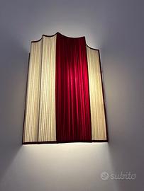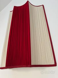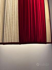 Applique in tessuto plissé bicolore (rosso/avorio) realizzata su misura da laboratorio artigianale.