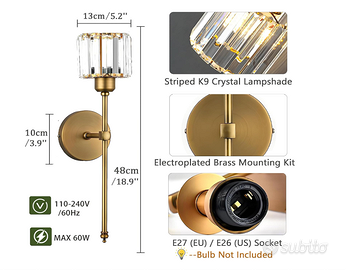 【Set di 2 Applique da Parete in Cristallo di Lusso】 Questo elegante set include due applique con raffinati paralumi in cristallo K9 e una robusta struttura in ottone dorato, perfette per creare un’atmosfera sofisticata in qualsiasi ambiente.
