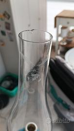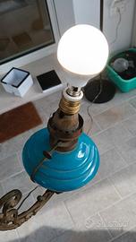 applique vecchia lampada ad olio convertita, perfettamente funzionante con paralume in vetro e contenitore per olio in ceramica.