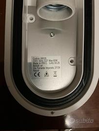 Applique da esterno, ovale, colore Bianco struttura in PVC e copertura trasparente in vetro, con porta-lampada E27 il suo grado di protezione IP44.