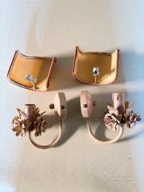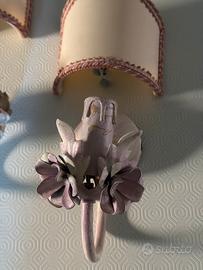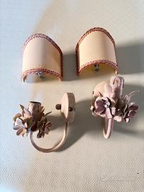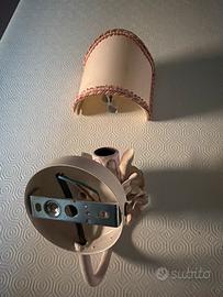 applique in lamiera color rosastro sfumato con attacco lampadina piccolo compresi di paralumi in tela con clip per aggancio