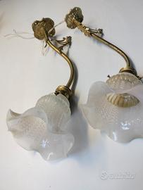 coppia applique in ottone stile liberty o Art Nouvean con paralume fumee originali