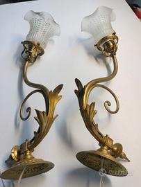 coppia lampade da parete (applique) ottone dorate primi 900 stile liberty o Art Nouveau originali