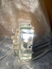 composta da vetri di murano sapientemente assemblati e acciaio inox. Una vera opera d'arte, una scultura piu' che una semplice lampada, unica perchè realizzata a mano con elementi sempre diversi e senza schemi se non la fantasia del maestro artista.