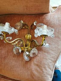 Applique ottone con gocce cristallo, anni 50 coppia. Misure 30 x 30, profondità 20. Prezzo 70 euro l'uno