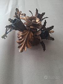 antico applique in ferro dorato a tre luci. ideale sia a soffitto che a muro. perfettamente funzionante.