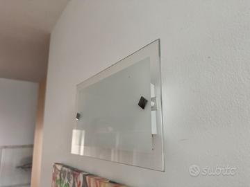 Nr. 3 applique in vetro trasparente / opaco e alluminio (bianco) dotato di nr. 2 portalampade ciascuno. Dim. vetro frontale 31x18 (spessore 2 mm.) profondità della lastra dal muro: 8 cm; Prezzo: Eur 5,00 cad. (o Eur 12.00 tutti e tre)