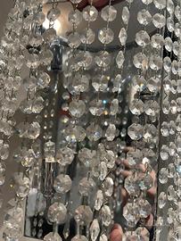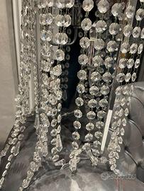 La lampada è caratterizzata da una raffinata cascata di pendagli in vero cristallo trasparente montati su una struttura in acciaio cromato. È un pezzo d'arredo iconico, perfetto per chi cerca un'illuminazione di lusso e grande impatto estetico.