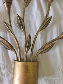 Design: Struttura in metallo con finitura oro antico/spazzolato lavorata a mano, composta da 5 steli flessuosi con foglie dettagliate.